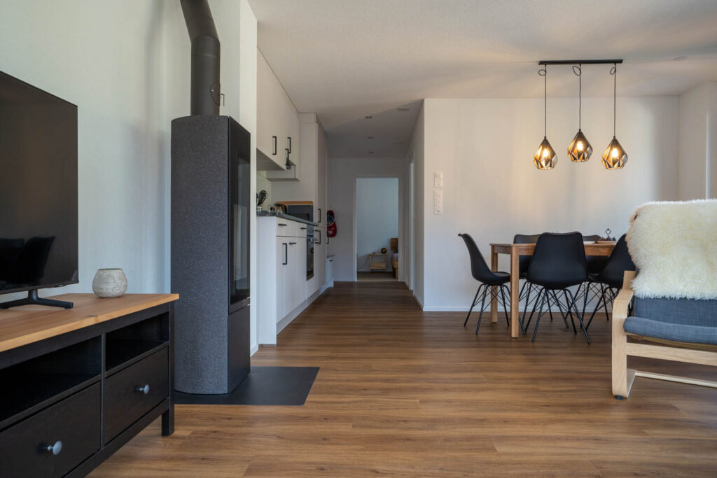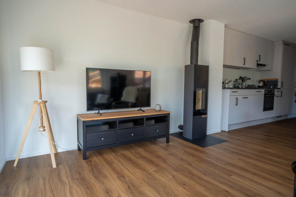 Die Ferienwohnung verfügt über 2 Zimmer mit je 2 Betten. Im Wohnzimmer befindet sich ein sehr komfortables Schlafsofa für 2 weitere Personen. Mit gemütlichem Designerofen.