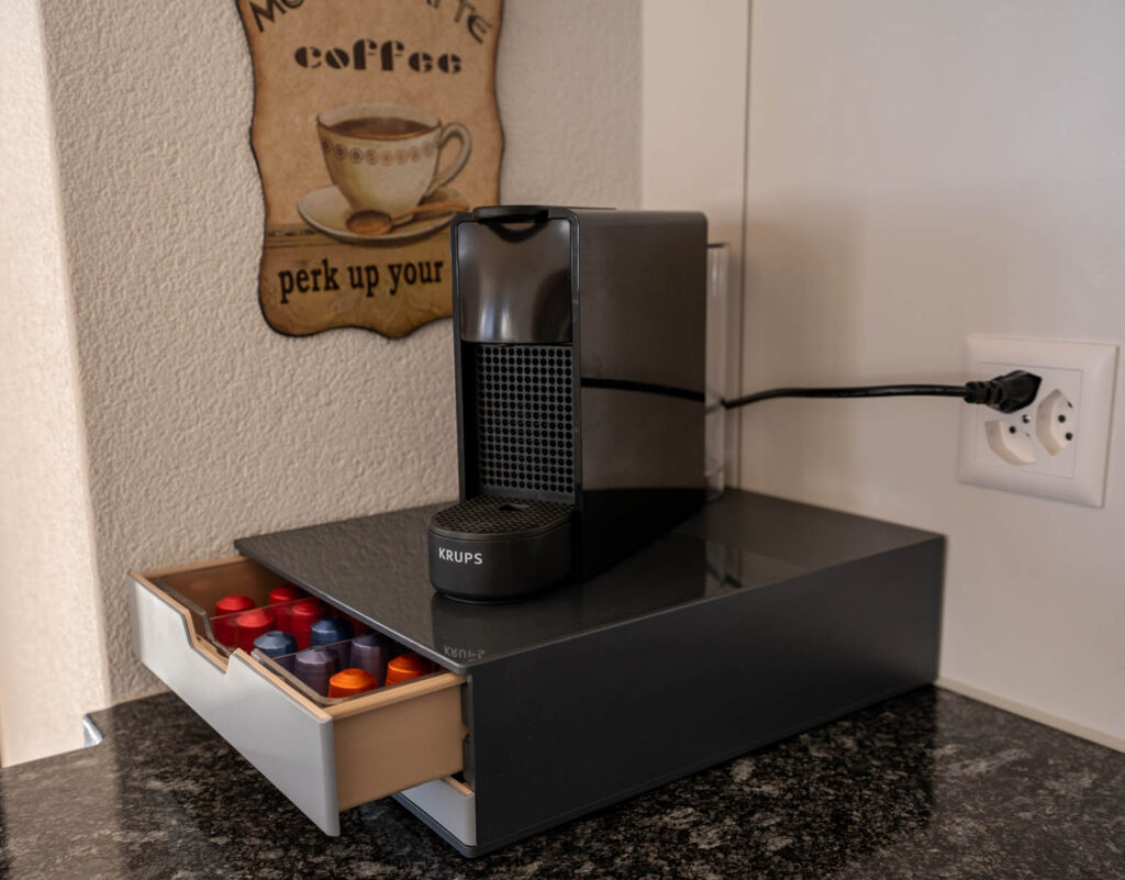 Wir haben eine Nespresso Kaffeemaschine mit einigen Kapseln inklusive (Espresso, Lungo, Koffeinfrei.